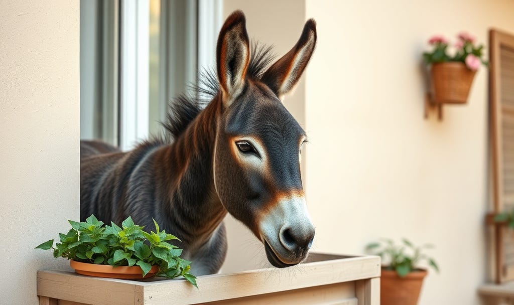 I’m buying a donkey. People everywhere are panicking. The food is flying off the shelves. And I? I’m getting a donkey. I have my reasons. Among them is the plain and simple need for a companion who believes in the power of walking one place to the next. But that’s not all.