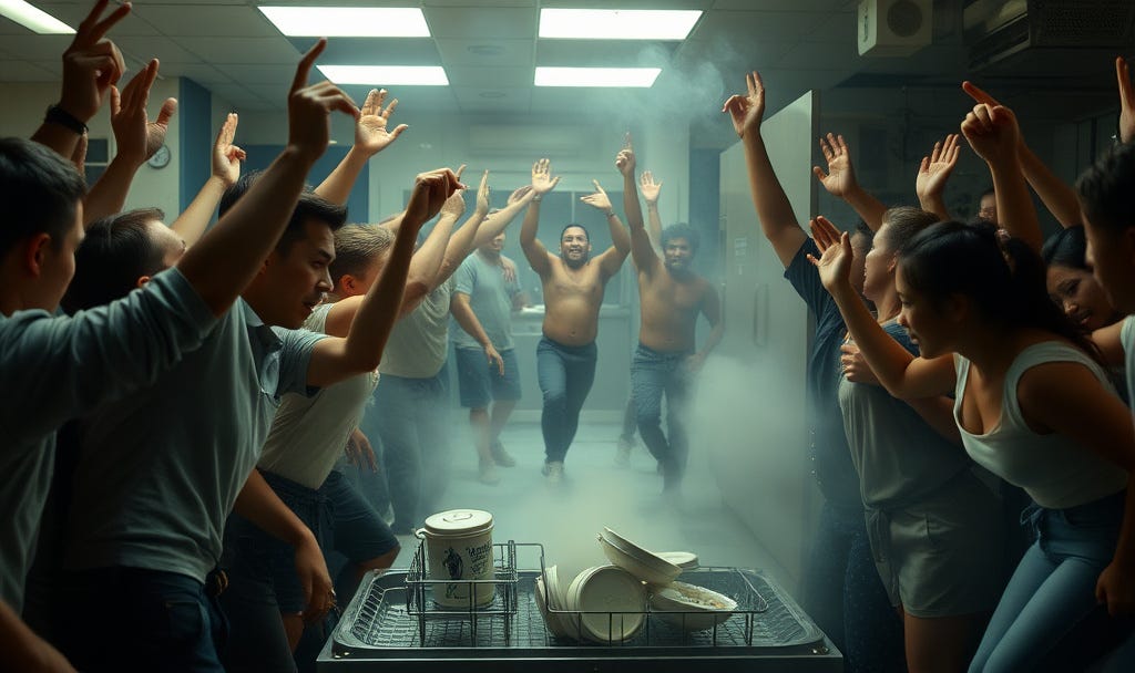 Friends, hand washing is such a lowly class thing. Let’s not slip backwards. Let’s defend our dishwashing privileges. Join the fight!